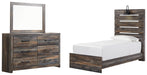 Drystan Twin Panel Bed with Mirrored Dresser