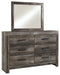 Details Includes dresser and mirror, Made of engineered wood (MDF/particleboard) and decorative laminate, Rustic gray planked replicated oak grain with authentic touch, Hooded pull hardware in dark finish, 6 smooth-gliding drawers, Mirror attaches to back of dresser, Safety is a top priority, clothing storage units are designed to meet the most current standard for stability, ASTM F 2057 (ASTM International), Drawers extend out to accommodate maximum access to drawer interior while maintaining safety, Assembly required